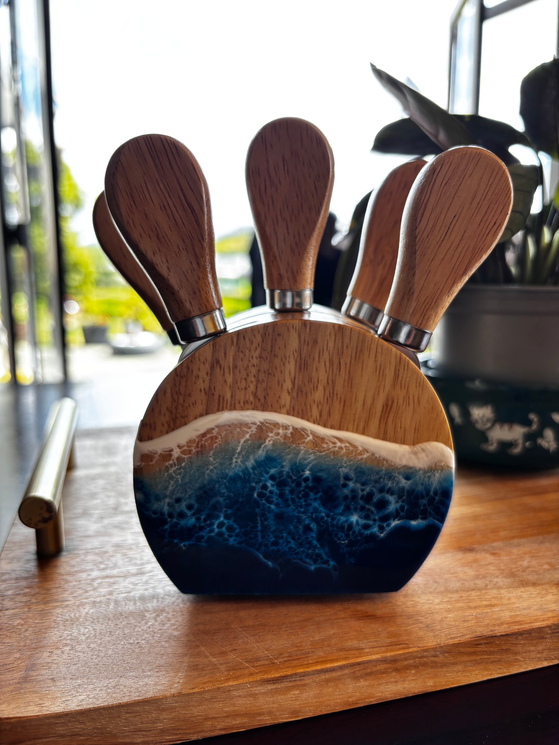A 5pcs Stainless Steel Cheese Knife Set with Wooden Handles - The Perfect Holiday Gift for Food Lovers! The Ultimate Cheese Slicer for Charcuterie Boards, Parties, And Everyday Use.